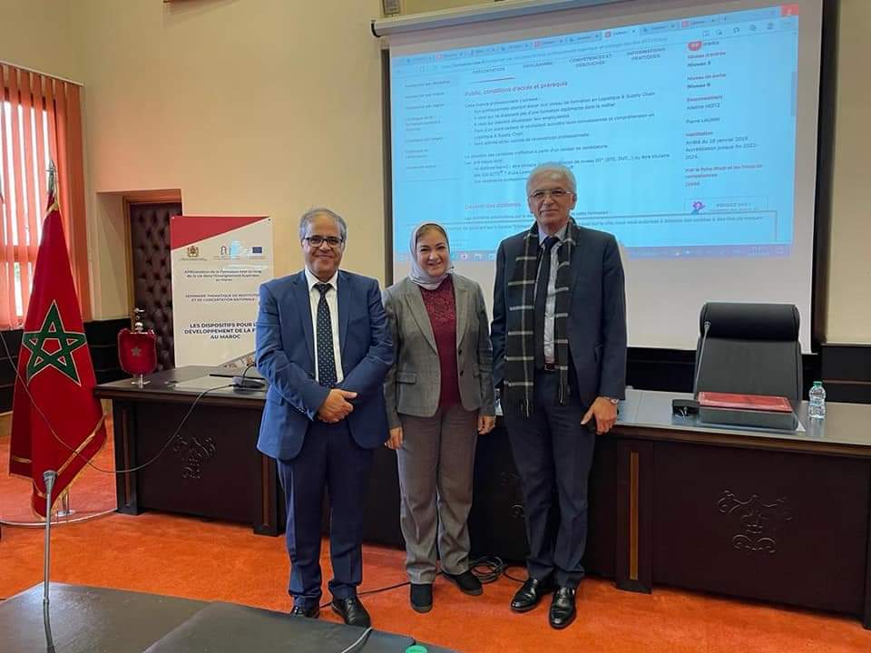 تشرف فريق مشروع Erasmus + AMEL من جامعة شعيب الدكالي بالمشاركة في أعمال الندوة الموضوعاتية حول التعويض والاستشارة الوطنية ، التي نُظمت في الفترة من 24 إلى 26 نوفمبر 2021 في جامعة محمد الخامس بالرباط.