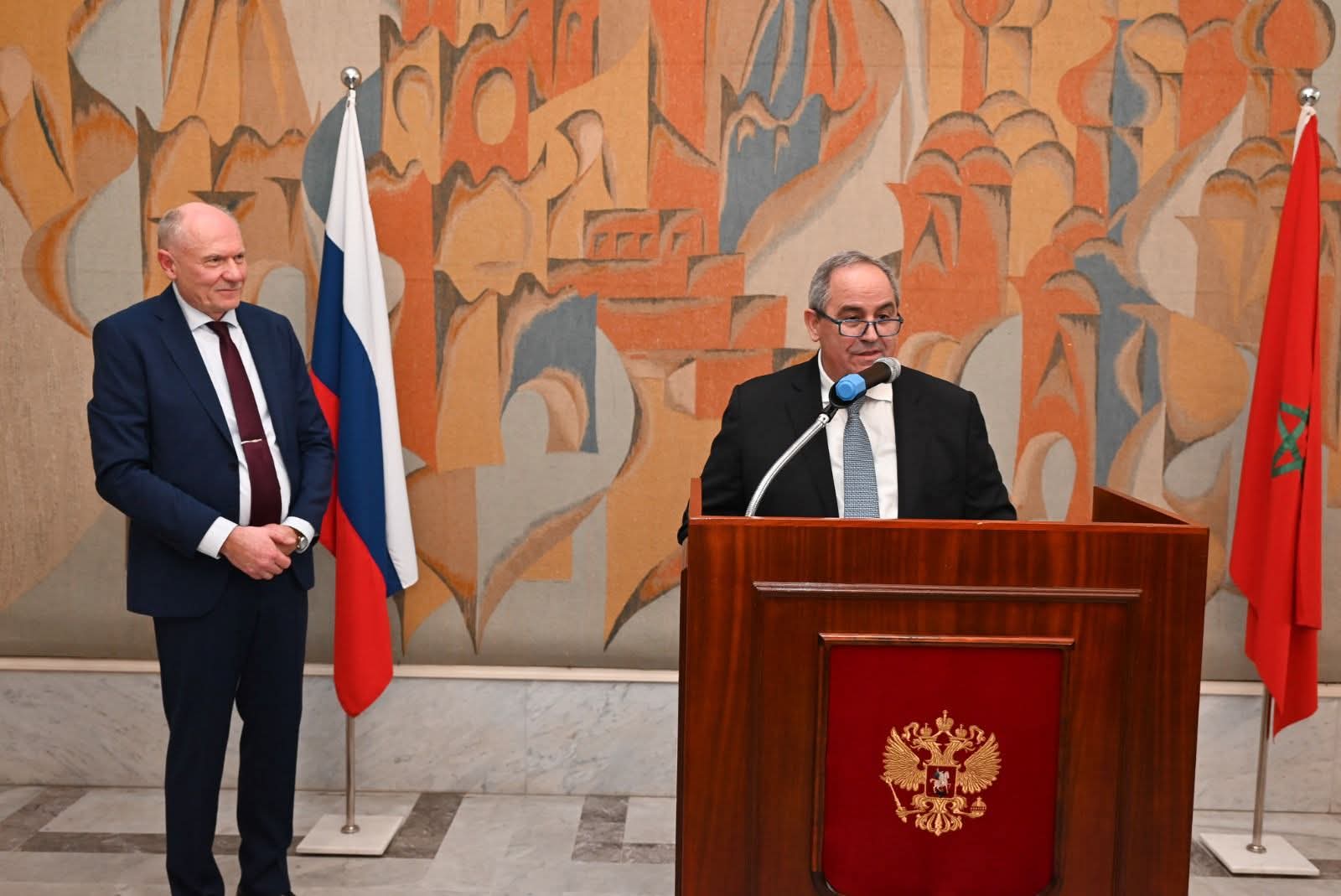 وبهذه المناسبة، أكد السيد الوزير، في كلمته، على عراقة العلاقات الثنائية بين المملكة المغربية وروسيا الاتحادية، القائمة على الدبلوماسية الحكيمة والتقدير المتبادل. والتي تعززت بشكل ملحوظ بالزيارتين التاريخيتين لجلالة الملك محمد السادس، نصره الله، إلى روسيا الاتحادية عامي 2002 و2016، واللتين ساهمتا في إرساء أسس شراكة استراتيجية، أطرتها خارطة طريق طموحة، وترجمتها الاتفاقيات الهامة التي وقعها جلالته وفخامة الرئيس الروسي فلاديمير بوتين ” ” S.E.M le Président Vladimir Poutine “.