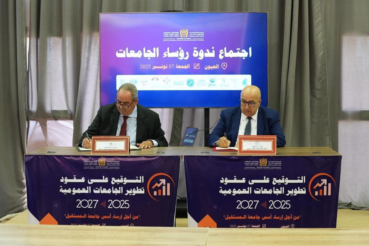 ترأس وزير التعليم العالي والبحث العلمي والابتكار، السيد عز الدين المداوي، يوم الجمعة 7 نونبر 2025، بمقر المدرسة العليا للتكنولوجيا بمدينة العيون، مراسم حفل توقيع عقود تطوير الجامعات العمومية 2025–2027. وذلك بحضور السيد الكاتب العام للوزارة والسادة رؤساء الجامعات والسيدات والسادة رؤساء المؤسسات الجامعية والمديرون بالإدارة المركزية.