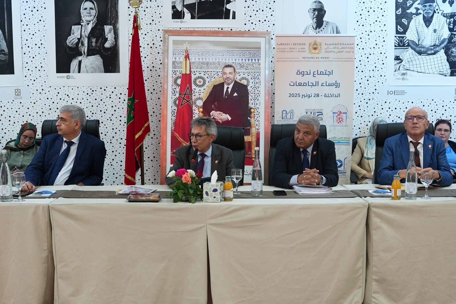 على هامش مراسم حفل الإطلاق الرسمي للمنصة الوطنية لتعلم اللغات “ELOGHA-SUP”، انعقد اجتماع ندوة رؤساء الجامعات، بمقر المدرسة العليا للتكنولوجيا بالداخلة، برئاسة منسق أشغال الندوة، رئيس جامعة الحسن الثاني بالدار البيضاء، السيد الحسين أزدوك وبحضور الكاتب العام لوزارة التعليم العالي والبحث العلمي والابتكار، السيد نور الدين الحلوي والسادة رؤساء الجامعات، إلى جانب عدد من المسؤولين بالإدارة المركزية.