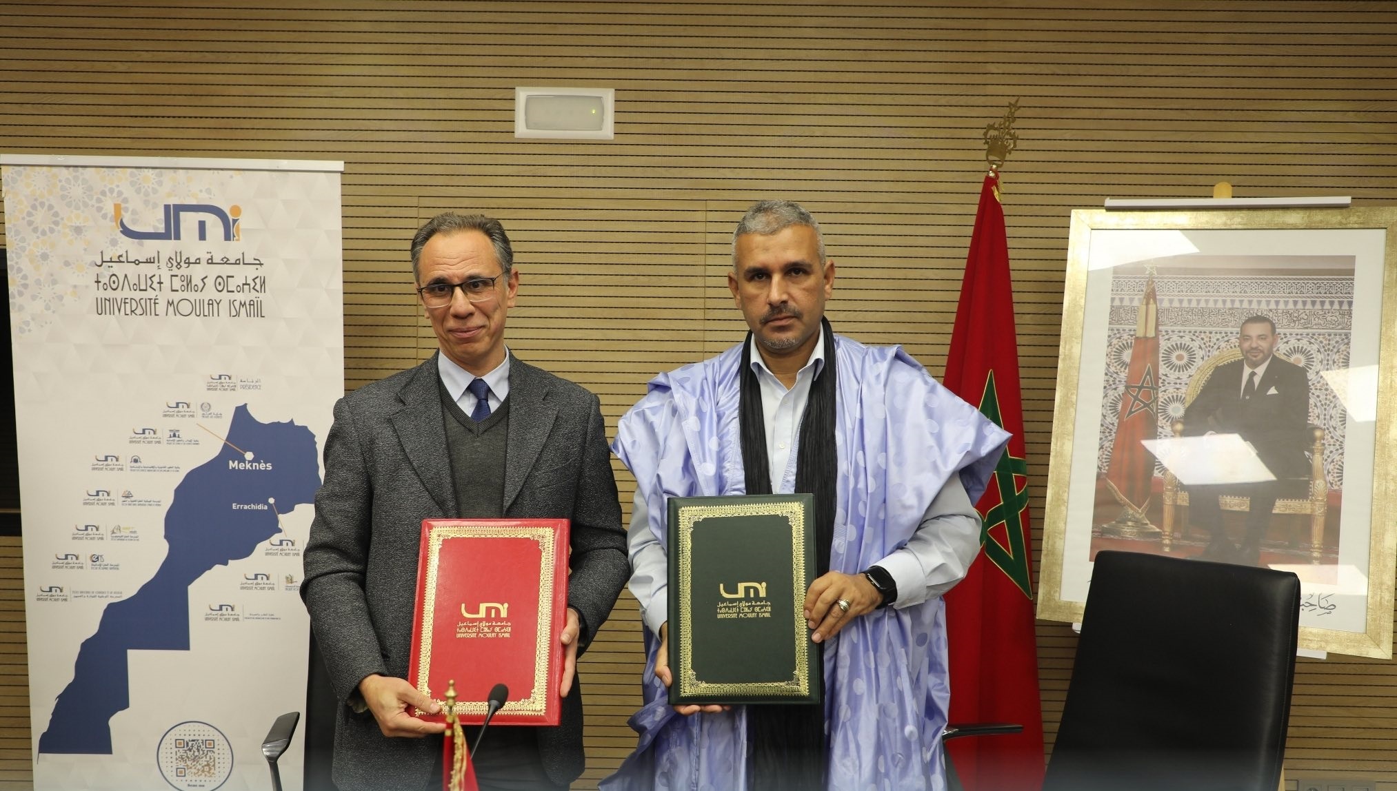 في إطار تعزيز انفتاح جامعة مولاي إسماعيل على محيطها الثقافي والفكري، وتعزيزًا لأدوارها الأكاديمية والمجتمعية، تم يوم الأربعاء 24 دجنبر 2025، بمقر رئاسة الجامعة، توقيع اتفاقية شراكة بين السيد أبوبكر بوعياد، رئيس الجامعة بالنيابة، والسيد صلاحي السويدي، رئيس منتدى الصحراء للحوار والثقافات، وذلك بحضور ممثلي المنتدى، إلى جانب عدد من المسؤولين الجامعيين والأساتذة الباحثين، حيث تم التأكيد على أهمية هذه الشراكة في تعزيز إشعاع الجامعة وترسيخ دورها كمؤسسة منفتحة على قضايا الفكر والثقافة.
