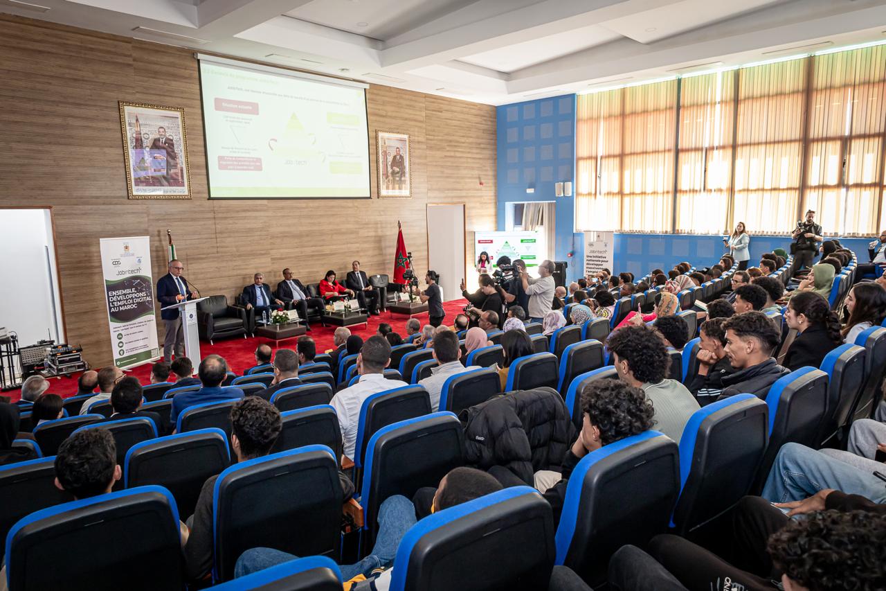 المائدة المستديرة، التي عرفت حضور السيد ينجا الخطاط، رئيس مجلس جهة الداخلة وادي الذهب، والسيد خالد سفير، المدير العام لمجموعة CDG، والسيد مهدي الكتاني، رئيس مؤسسة Maroc Numeric Cluster، والسيد أحمد كثير، مدير المركز الجهوي للاستثمار لجهة الداخلة وادي الذهب، والسيد زوهير مهاني، مدير المدرسة العليا للتكنولوجيا بالداخلة، تميزت بإطلاق مرحلة جديدة ضمن مراحل تفعيل برنامج JobInTech الوطني، الذي تشرف عليه وزارة الانتقال الرقمي وإصلاح الإدارة بشراكة مع مجموعة صندوق الإيداع والتدبير (CDG)، وتنفيذ مؤسسة Maroc Numeric Cluster.