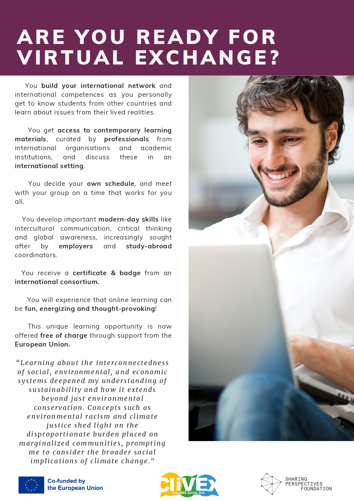 Another round of the virtual exchange on Climate Justice in Spring 2025 (Clivex).