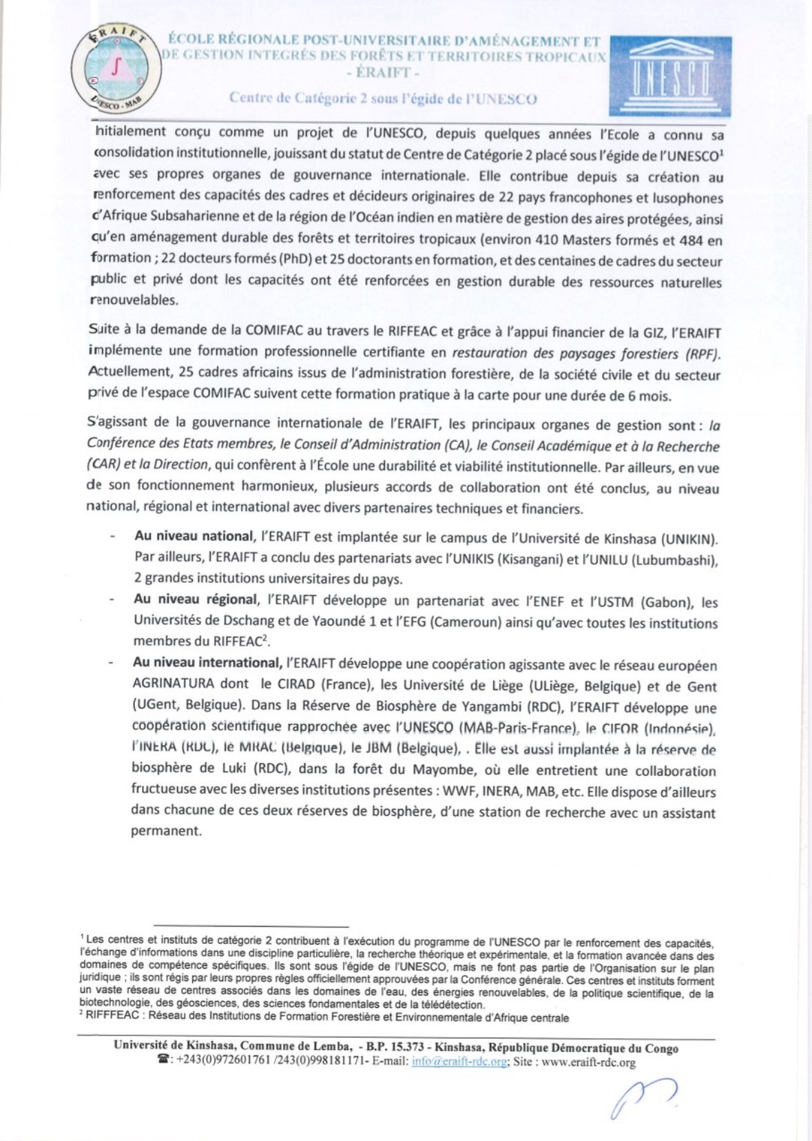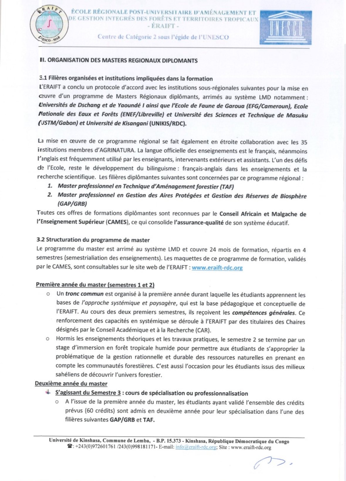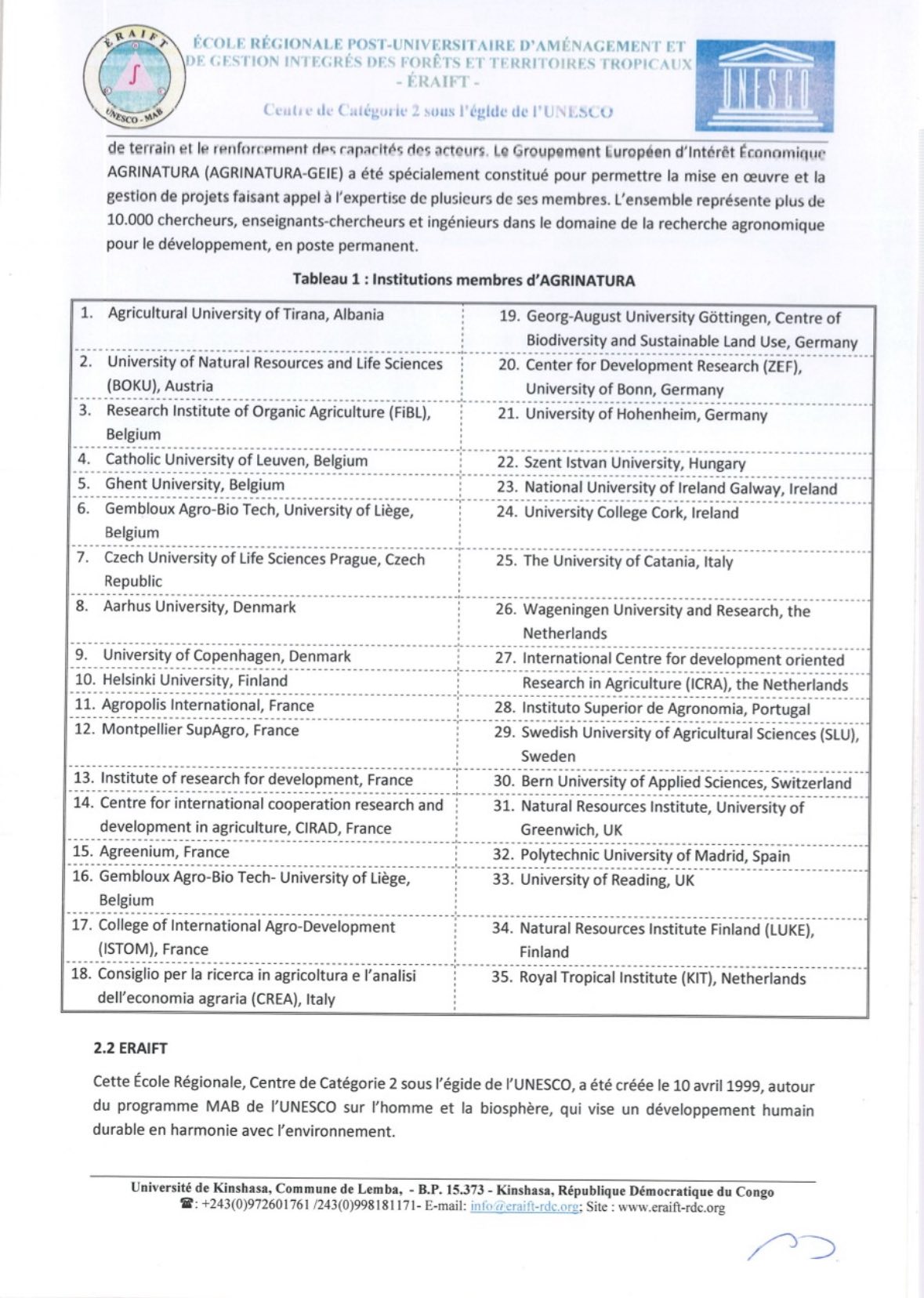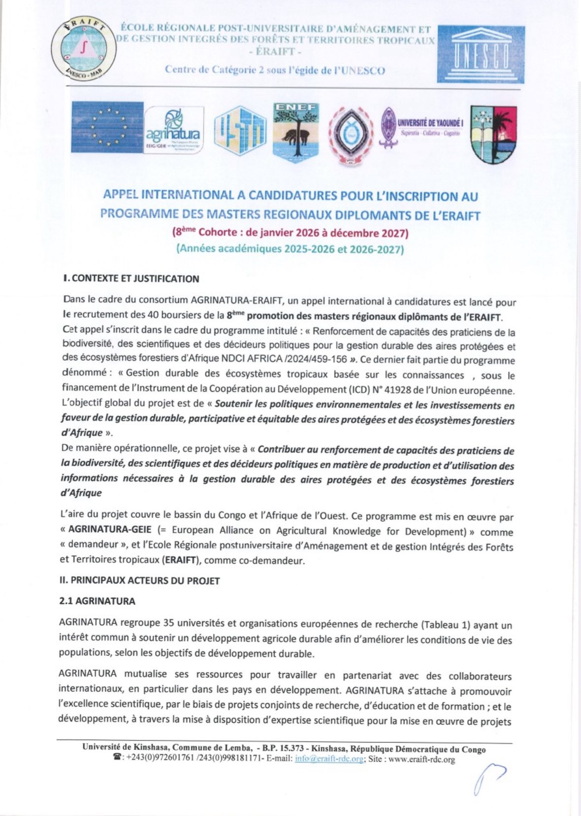 L’École Régionale Post-Universitaire d’Aménagement et de Gestion Intégrés des Forêts et Territoires Tropicaux (ERAIFT), en collaboration avec Agrinatura, lance un appel international à candidatures pour sa 8ème cohorte de Masters régionaux diplômants.