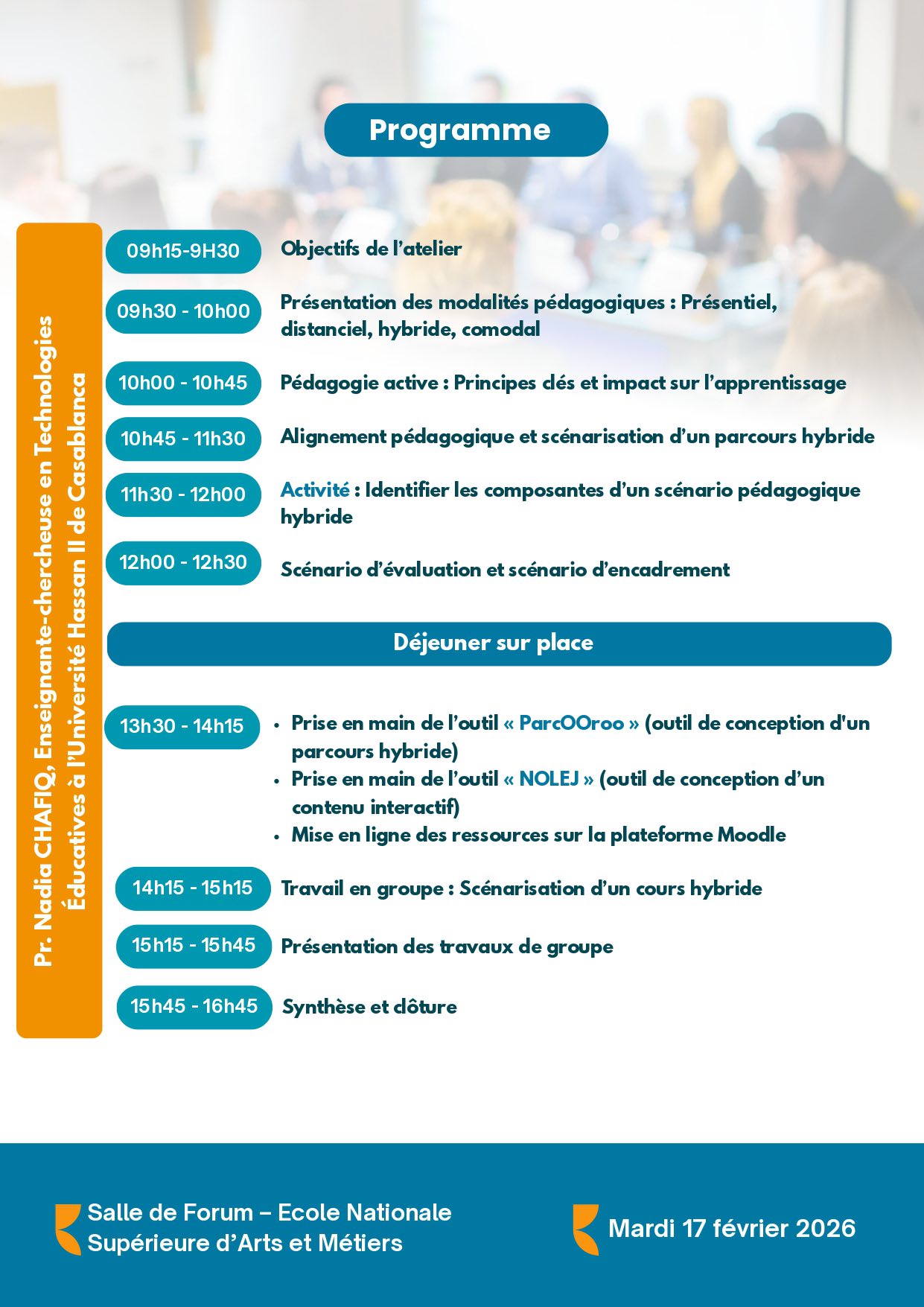 La première session sera organisée sous le thème : « Pédagogie Active et Blended Learning », le mardi 17 février 2026 à 09h00, selon le programme disponible sur l’affiche.