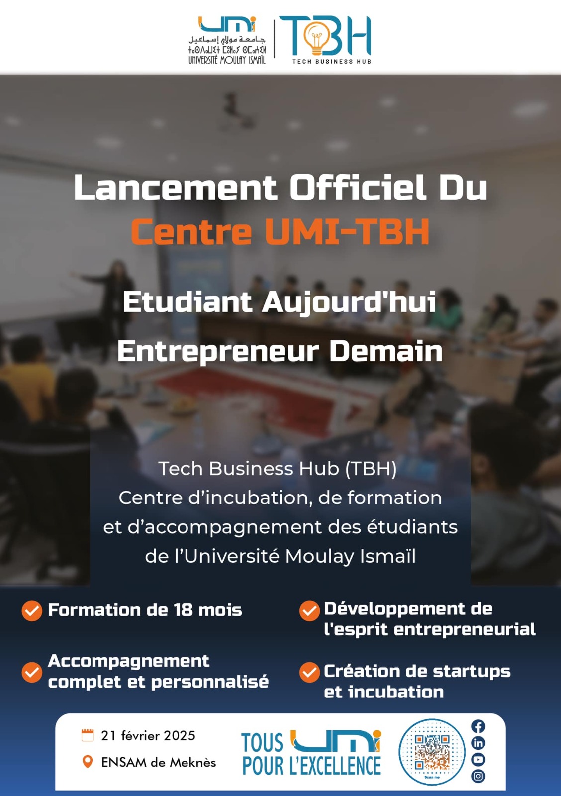 L’université Moulay Ismaïl annonce le lancement du Tech Business Hub (TBH), un centre dédié à l’incubation, la formation et l’accompagnement entrepreneurial des étudiants et lauréats de l’UMI. L’ouverture officielle aura lieu le vendredi 21 février 2025, à la salle de conférence de l’ENSAM Meknès.