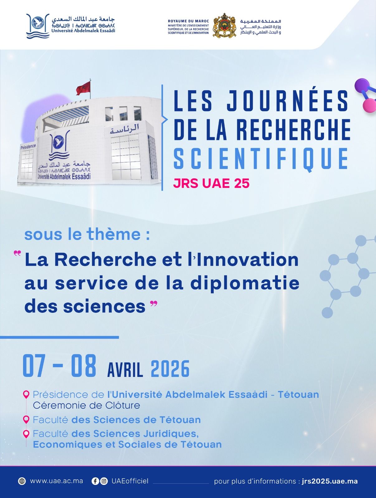 L’Université Abdelmalek Essaâdi a le plaisir de vous accueillir les 07 et 08 avril 2026 pour deux journées dédiées à la recherche, à l’échange scientifique et au partage des connaissances.