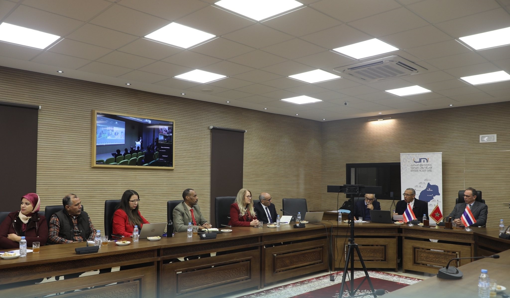 Le Président de l’Université Moulay Ismaïl, Pr. Aboubakr BOUAYAD, adresse ses sincères remerciements à Son Excellence l’Ambassadeur du Maroc en Thaïlande ainsi qu’au Président de STOU, pour leur engagement et leur soutien. Il salue également la participation active et l’intérêt manifesté par les étudiants et professeurs thaïlandais, dont les questions pertinentes ont enrichi les échanges.