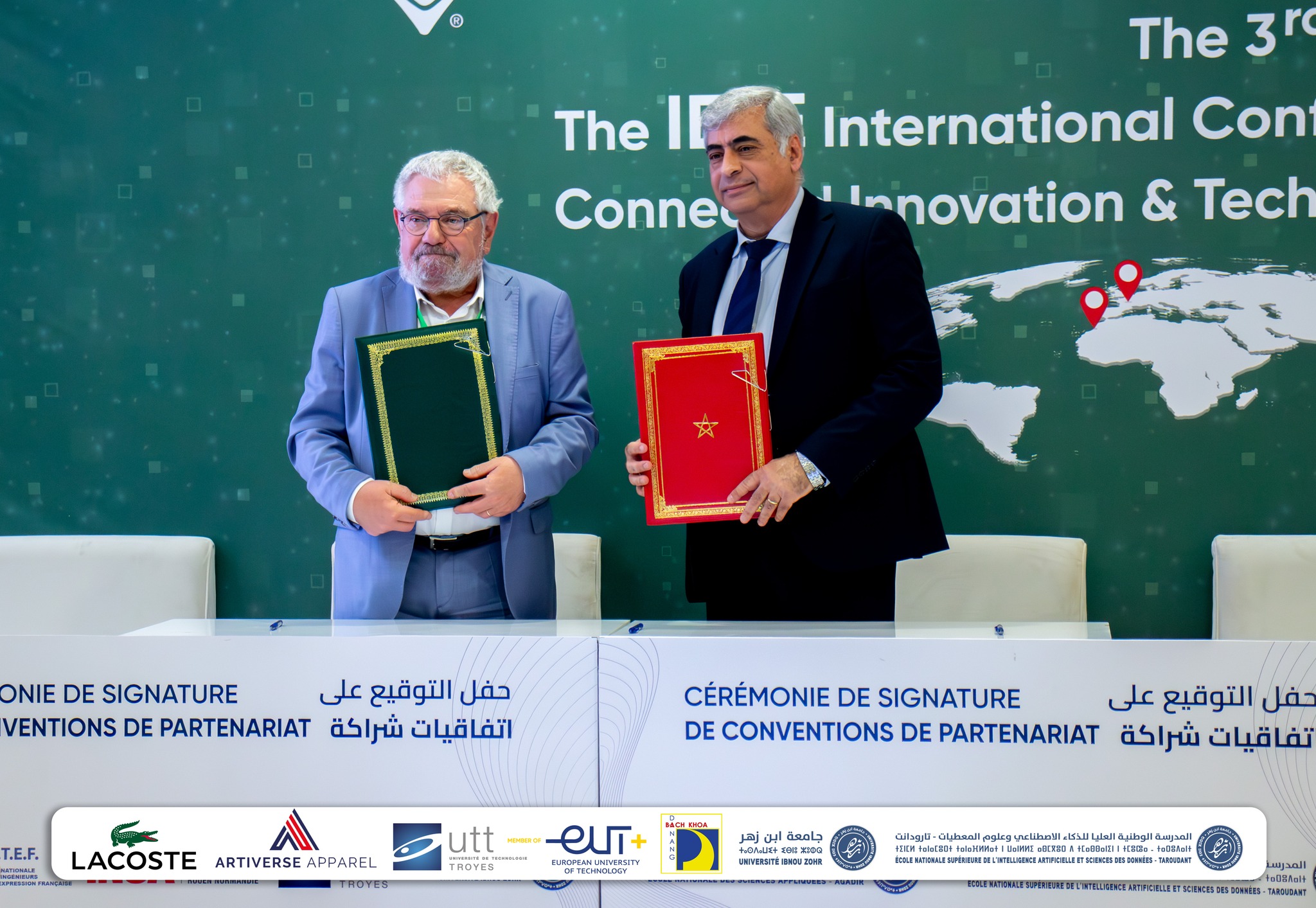 Co-organisé par l’Université Ibnou Zohr – l’École Nationale Supérieure de l’Intelligence Artificielle et Sciences des Données de Taroudant , l’Université de Technologie de Troyes (France) et l’Université des Sciences et Technologies – University of Da Nang (Vietnam), cet événement bénéficie également de l’appui de partenaires industriels de premier plan, notamment Lacoste, Artiverse Apparel et la Chaire Connected Innovation.